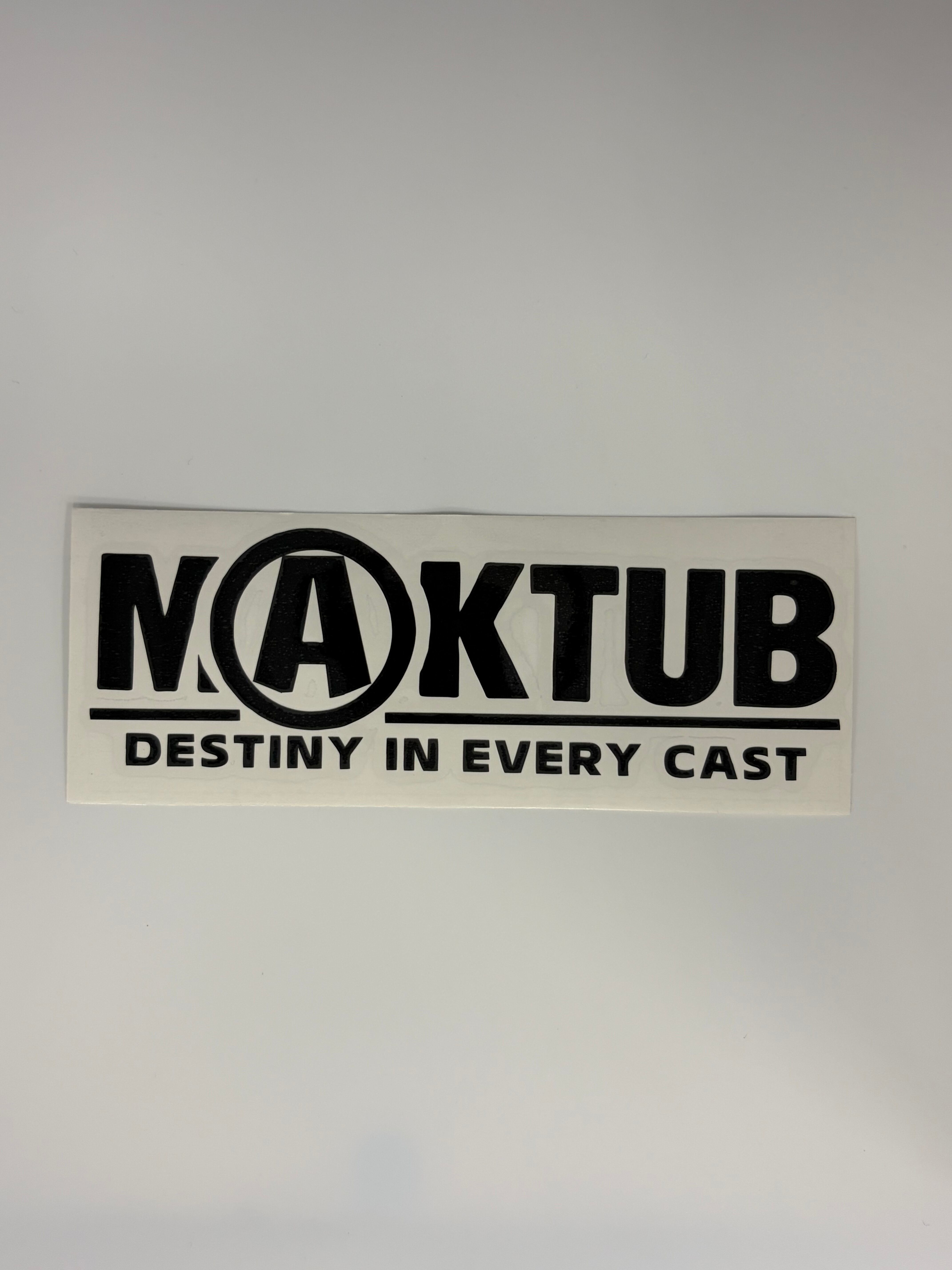 Precision-cut vinyl sticker featuring the MAKTUB logo and signature slogan. Designed with a clean, high-contrast finish that stands out on any surface.